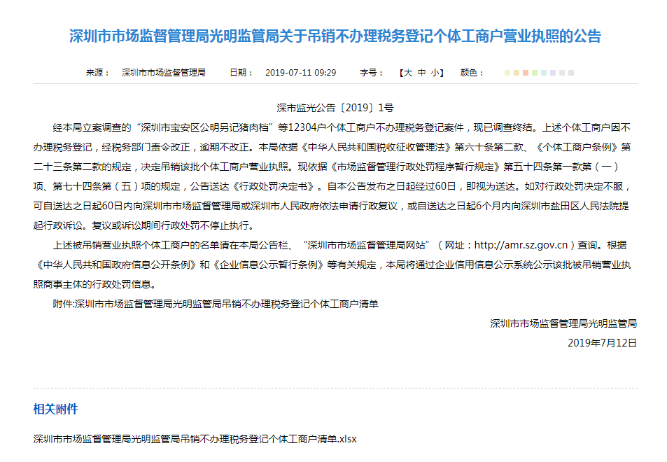 深圳各個轄區的市場監督管理局都會發布關于吊銷不辦理稅務登記個體工商戶營業執照的公告,不辦理稅務登記,經稅務部門責令改正,逾期不改正。或者失聯被納入異常的也會進行聽證通告,逾期也會被吊銷營業執照。