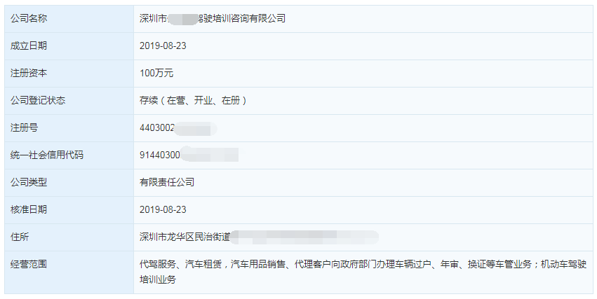 下面我們以深圳最近注冊的某駕駛培訓咨詢為例: