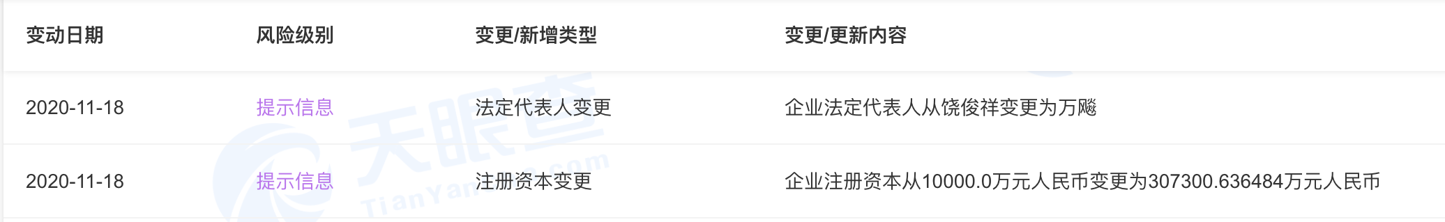 近日,深圳市智信新信息技術有限公司發生工商變更,法定代表人由饒俊祥變更為華為消費者業務首席運營官萬飚。同時,該公司注冊資本由1億元人民幣增加至約30.73億元人民幣,增幅約2973%。