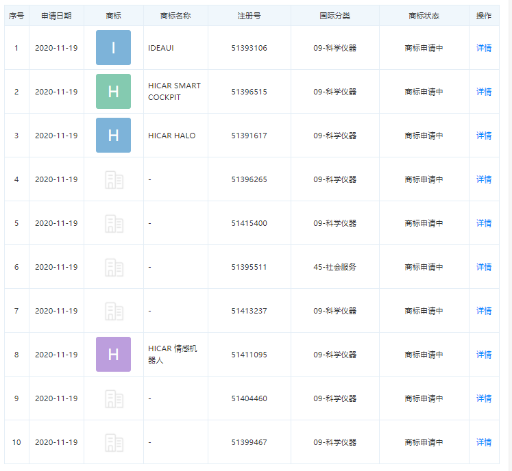 近日,華為技術(shù)有限公司新增多條商標(biāo)信息,其中一條商標(biāo)名稱為“HICAR 情感機(jī)器人”,申請日期為2020年11月19日,國際分類為“科學(xué)儀器”,商標(biāo)狀態(tài)為“商標(biāo)申請中”。此外,該公司還在同日申請了名稱為“HICAR SMART COCKPIT”、“HICAR HALO”的商標(biāo)。