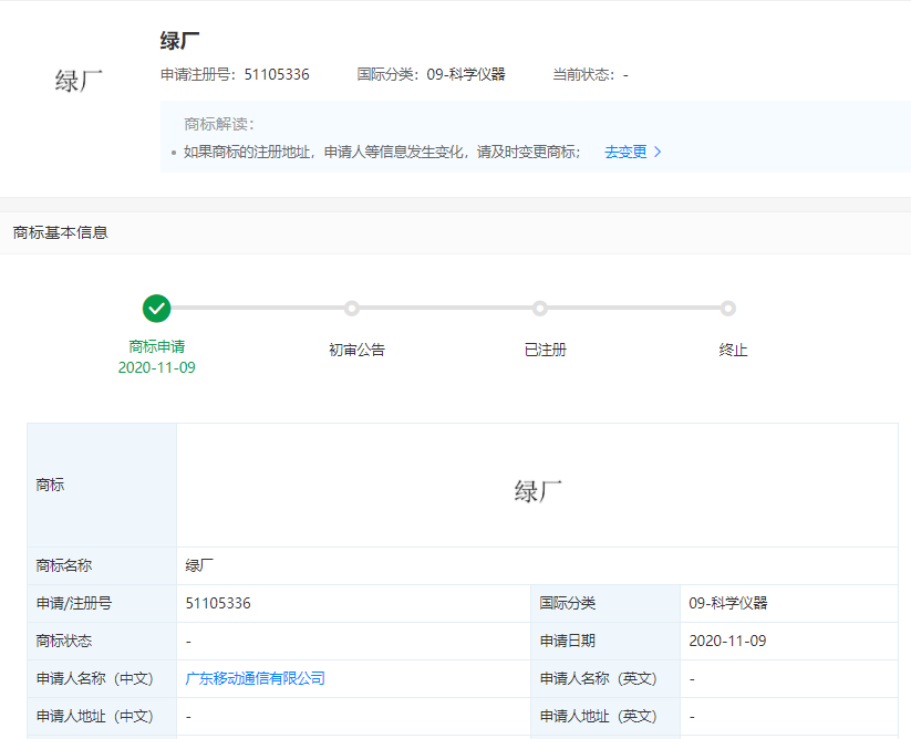 OPPO關聯(lián)公司廣東移動通信有限公司已于11月9日申請注冊“綠廠”商標,該商標國際分類為“科學儀器”,商標狀態(tài)為“商標申請中”。早在2019年8月,vivo關聯(lián)公司維沃移動通信有限公司就已注冊“藍廠”商標,國際分類為“通訊服務”、“網(wǎng)站服務”等,商標狀態(tài)為“已注冊”。
